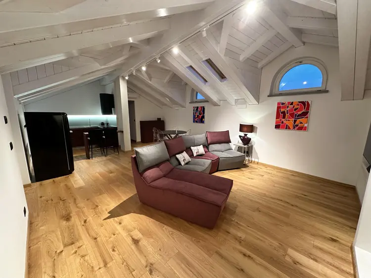 Two-room attic apartment of about 60 square meters, equipped with double bedroom, bathroom and living room with open kitchen. For up to four Guests.